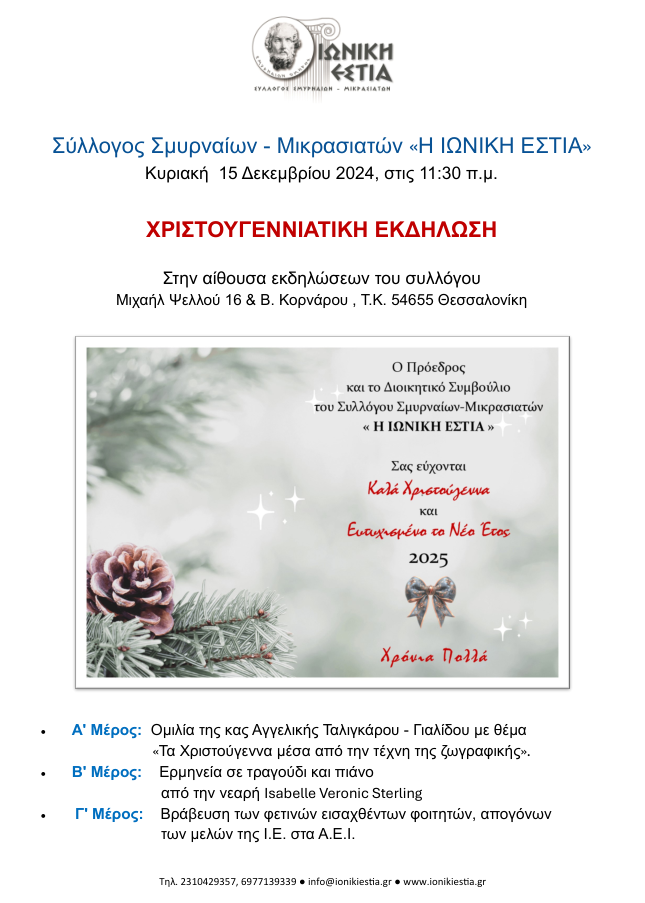 ΧΡΙΣΤΟΥΓΕΝΝΙΑΤΙΚΗ ΕΚΔΗΛΩΣΗ - 10 ΔΕΚΕΜΒΡΙΟΥ 2023